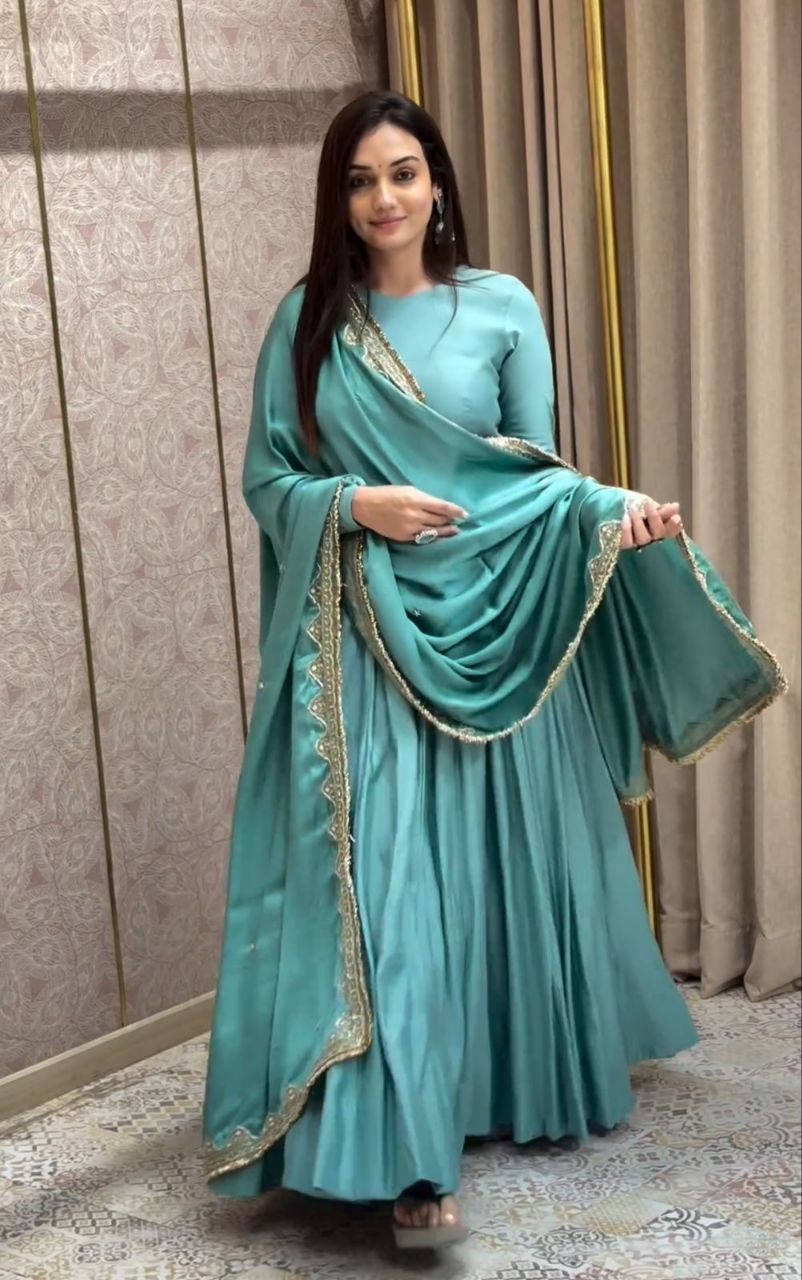 Step into timeless elegance with this stunning Sky Blue Gown, crafted from premium French fabric and lined with soft micro inner for maximum comfort. The gown features a flattering silhouette with a 7+ meter flair, a secure zipper closure, and a perfect 58-inch length. Available in sizes M, L, XL, XXL, it’s designed to fit beautifully for any special occasion.