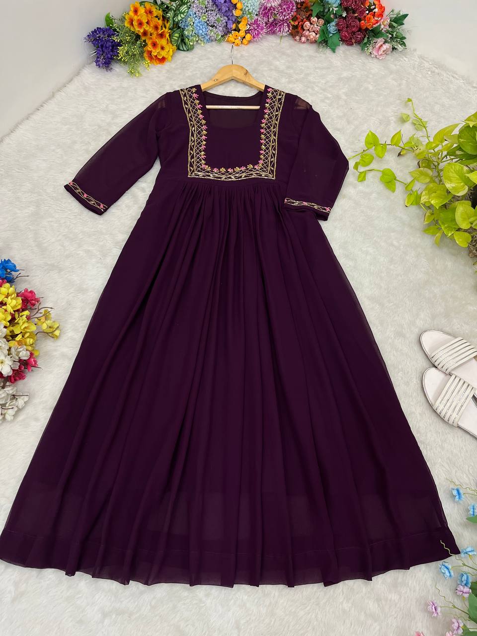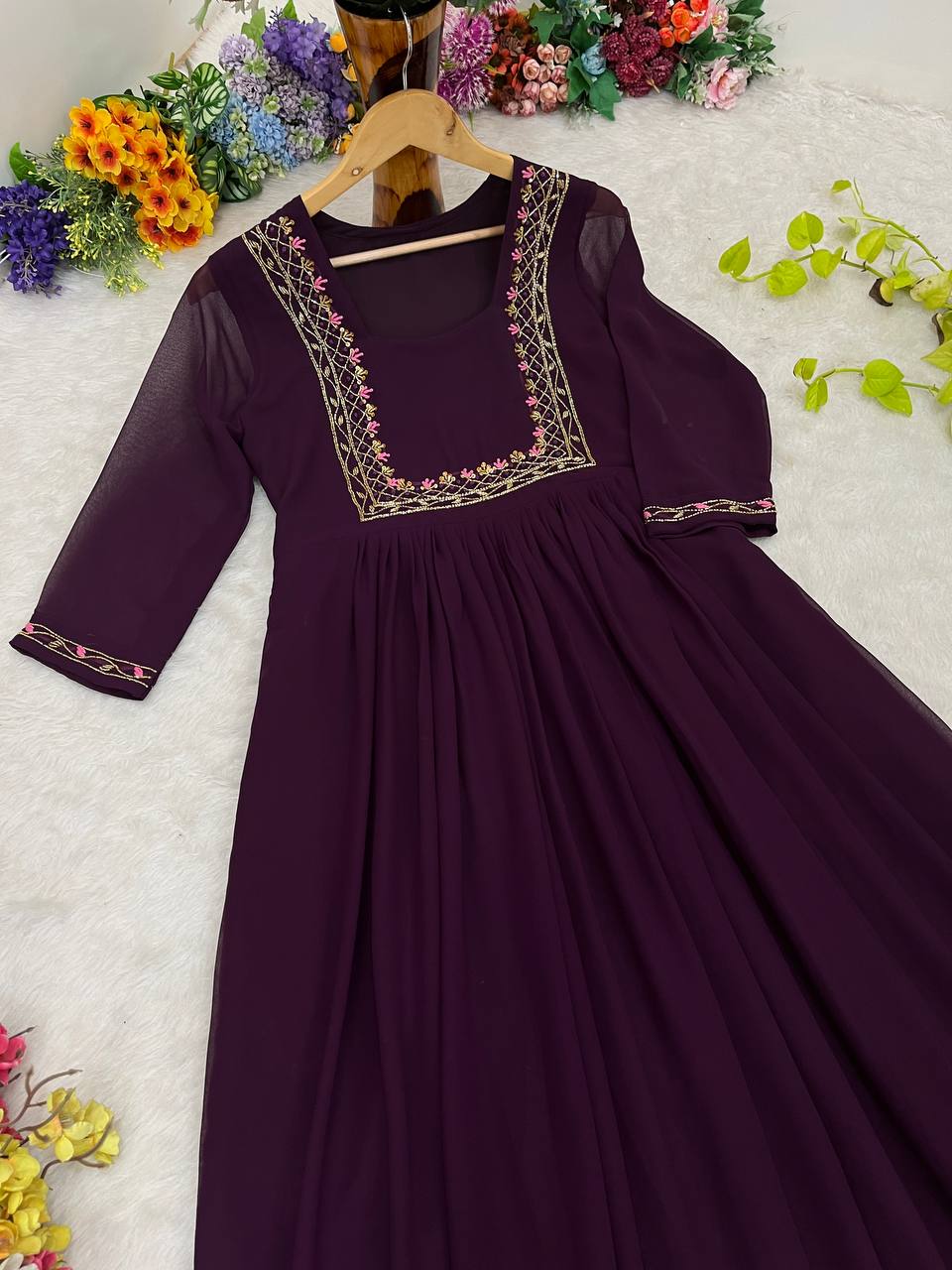 Elevate your style with our stunning Wine Fox Georgette Kurti, beautifully crafted with intricate handwork featuring Caddana and sequence detailing. Designed for elegance and comfort, this kurti is perfect for festive occasions, parties, or casual gatherings. The vibrant red color and exquisite threaded handwork add a touch of glamour to your wardrobe.