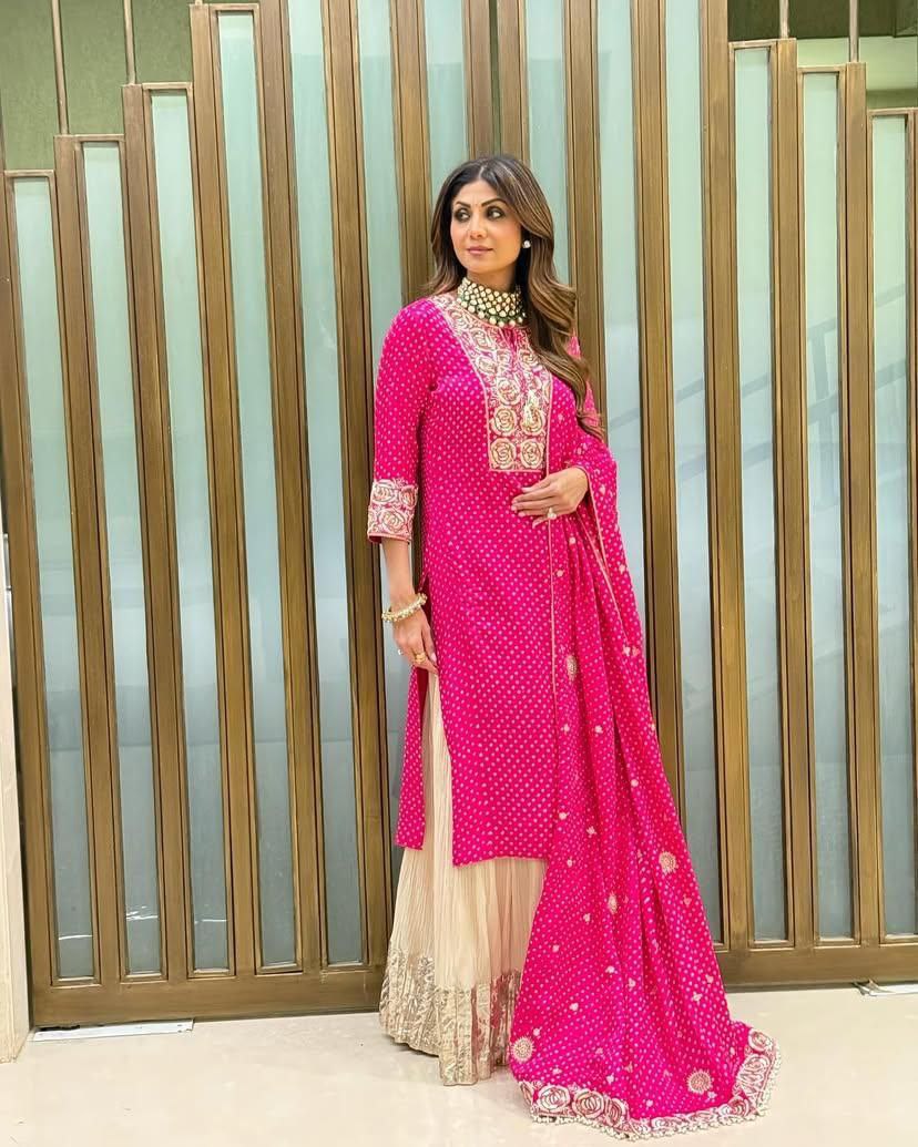 Make a bold and stylish statement in this Rani Pink Sharara Set!