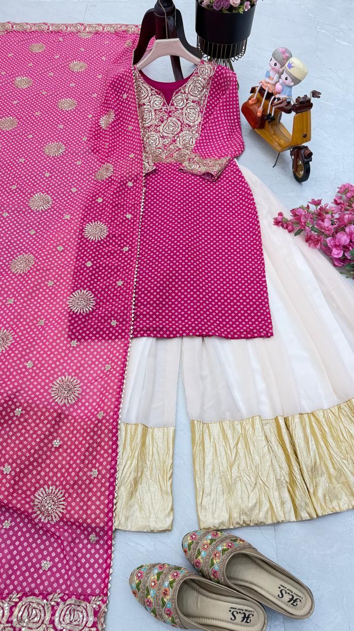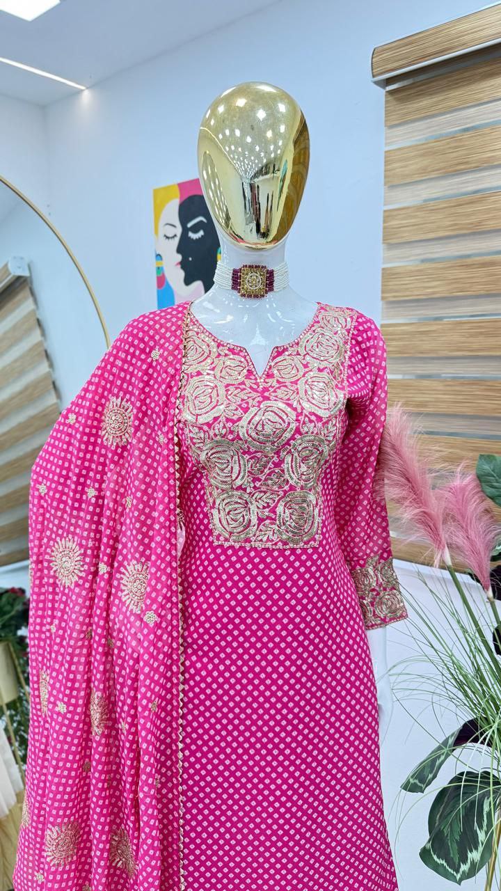 Turn heads with this Rani Pink Designer Sharara Set, a perfect blend of tradition and contemporary elegance. Crafted from premium Fox Georgette, this outfit is ideal for festive occasions, parties, and special celebrations.