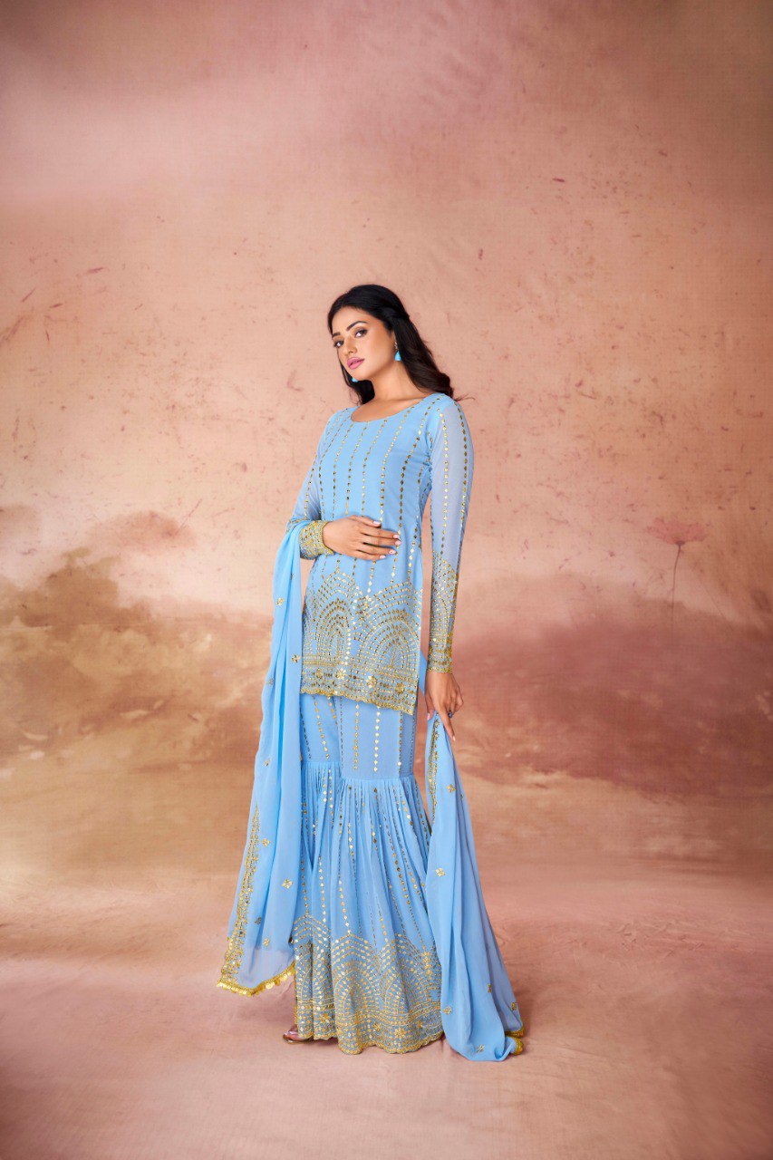 Breezy, beautiful, and ready to shine — this sky blue sharara set is a must-have for your next celebration!